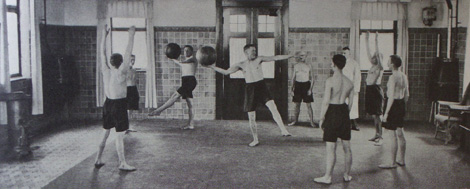 Auch Knacks 1928 verfasstes Plädoyer für das Großpavillonsystem im Krankenhausbau gründete in seinen Vorstellungen von einer umfassenden Behandlung der Patienten. Auch wenn - so Knack - die modernen, mehrgeschossigen, zusammenhängenden Großgebäude nach US-amerikanischem Vorbild zweckmäßig sein könnten, seien die räumlich weiten Anlagen des Großpavillonsystems eher geeignet, Sportplätze, Turn- und Schwimmhallen für die Rekonvaleszenz der Kranken zu beherbergen.[99] In Barmbek richtete Knack 1927 eine Sportabteilung ein, im Frühjahr 1928 wurde ein Sportplatz angelegt. Hier fanden vormittags, geleitet durch einen sportlich vorgebildeten Arzt bzw. eine solche Ärztin, für Männer und Frauen getrennte Übungsstunden statt.[100] Knack hielt diese Art der Leibesübungen - deutlich von der Physikalischen Therapie zu unterscheiden - für besonders geeignet, den Heilungsprozess von Krankheiten, aber vor allem auch das "Gesundheitsverhalten" der Patienten zu verbessern: "Das Vorhandensein einer solchen Abteilung wird sich sehr bald dahin auswirken, dass der Sinn für naturgemäße Lebensweise bei den Kranken gehoben wird und so das Krankenhaus mehr noch als bisher als hygienischer Erzieher wirkt."[101]