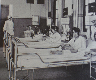1910 war mit dem Bau des Allgemeinen Krankenhauses Barmbek begonnen worden. Ende 1913 hatte das Krankenhaus seinen Betrieb aufgenommen. Der umfangreiche Gesamtkomplex setzte sich aus verschiedenen Teilen zusammen, den in massiver Weise erbauten Gebäuden der Hauptanstalt und einem Barackenkrankenhaus. Zum Zeitpunkt der Inbetriebnahme für 2000 Betten ausgelegt, ist das AK Barmbek - 1928 mit 2400 Betten - nach dem Allgemeinen Krankenhaus Eppendorf, das Raum für 2770 Betten bot, das zweitgrößte Hamburgs.[84] 1928 waren 1481 Personen im AK Barmbek beschäftigt, davon nur 67 Ärzte, 175 Schwestern und 406 Pflegekräfte.[85]