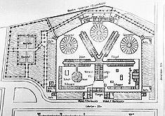 (7) Gefängnis Lehrter Straße in der Zeit der Haft Neves: Der rechts unten waagerecht abgehende Trakt beherbergte die „Irrenabteilung“.
