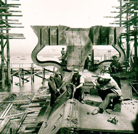 (3) Im Gegenschuss: Nieter beim Bau der Imperator, 1911. Photo: Johann Hamann
