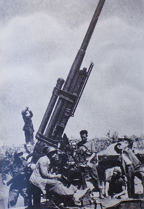 Aber die meiste Zeit lagen wir an den Fronten, um unsere Infanterie gegen die demoralisierende Übermacht der faschistischen Luftwaffe zu verteidigen. Solange wir mit Flugabwehr auf die Heinkel-, Caprani- und Junker-Flugzeuge feuerten, konnten sie unsere Bodentruppen nicht angreifen. Daher war es ihr Ziel, zuallererst uns auszuschalten.