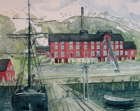Dass Fischerei bis zum Anfang des 20. Jahrhunderts in entfernten Fanggebieten (vom Heimatort der Fischer aus gesehen) immer auch Landstützpunkte brauchte, ist im Zeitalter solcher Fabrikschiffe in Vergessenheit geraten. Heute können Fänge autark verarbeitet, Mannschaften versorgt, Kranke ausgeflogen werden. Beim klassischen Walfang, aber auch beim früheren Kabeljau- und Heringsfang waren Landeorte unverzichtbar, zur Verarbeitung der Fische, zur Aufnahme von Salz zur Konservierung der Fischprodukte und von Lebensmitteln für die Besatzung etc. Der kleine, herzergreifende Friedhof französischer Islandfischer, den ich auf dieser Website bereits präsentiert habe, belegt die alten Bedingungen anschaulich.