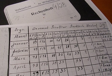 (1) Von der Polizei bei einer Haussuchung eben mal mitgenomen: das Mitgliederregister der KPD-Zelle Neuhof 1929